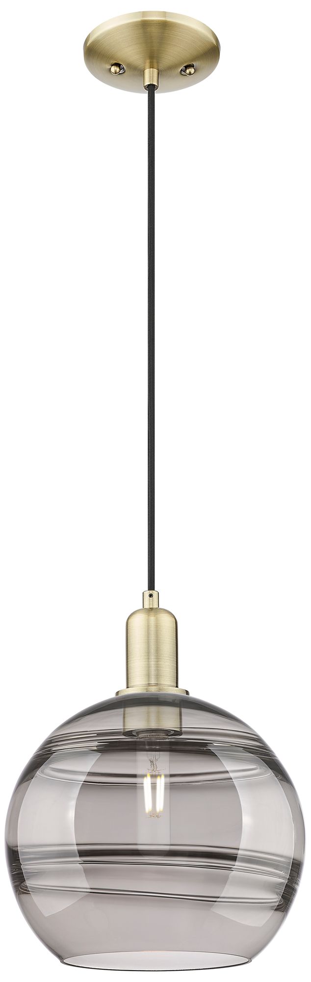Arcadia Rochester 10"W Brass Cord Mini Pendant w/ Light Smoke Shade