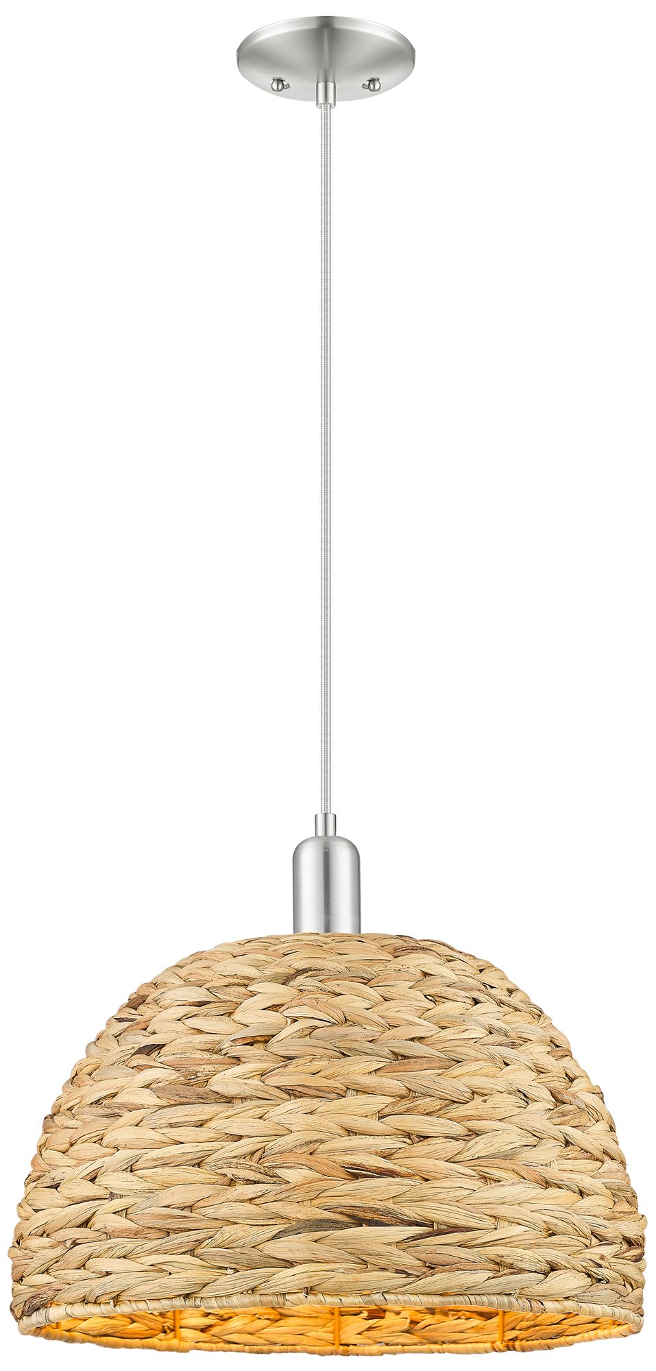 Arcadia Woven Rattan 16"W Brushed Satin Nickel Cord Hung Mini Pendant