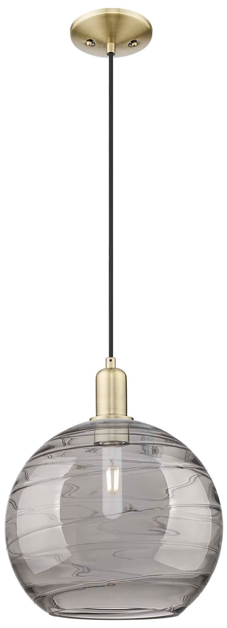 Arcadia Athens 12"W Brass Cord Pendant w/ Light Smoke Deco Swirl Shade