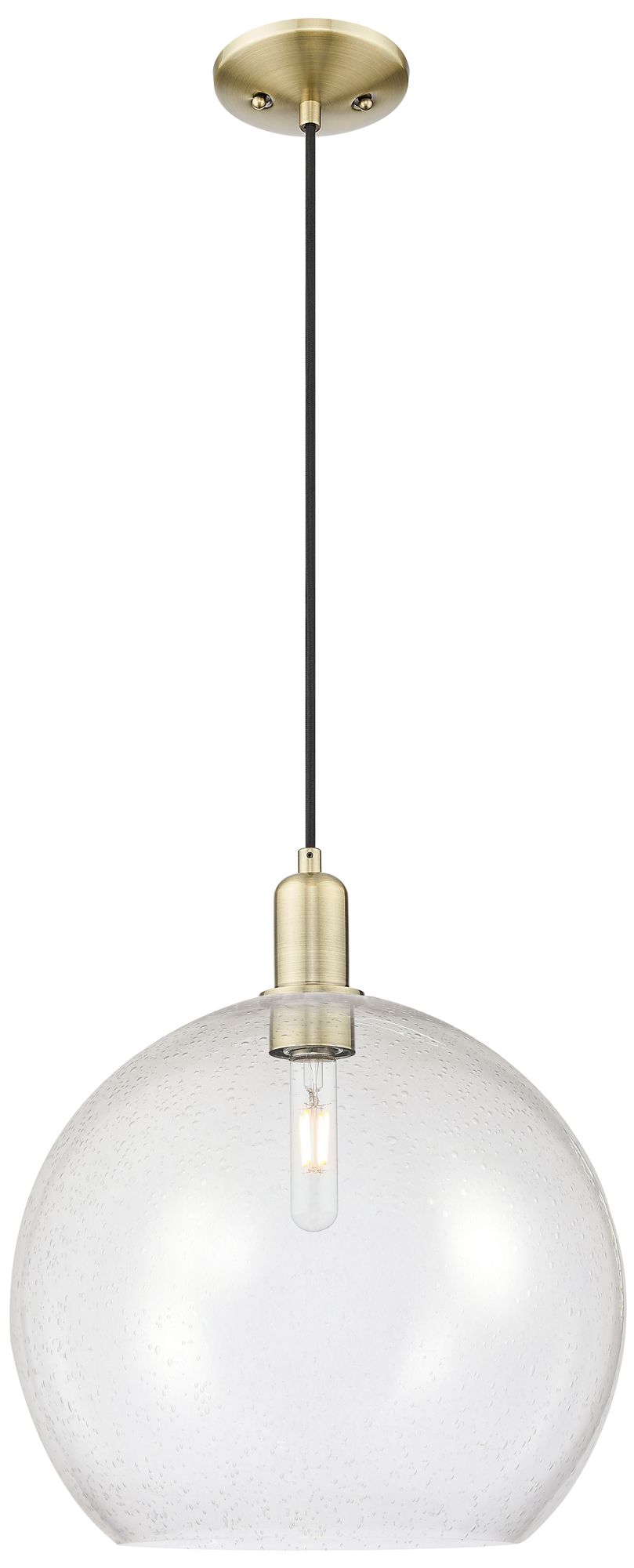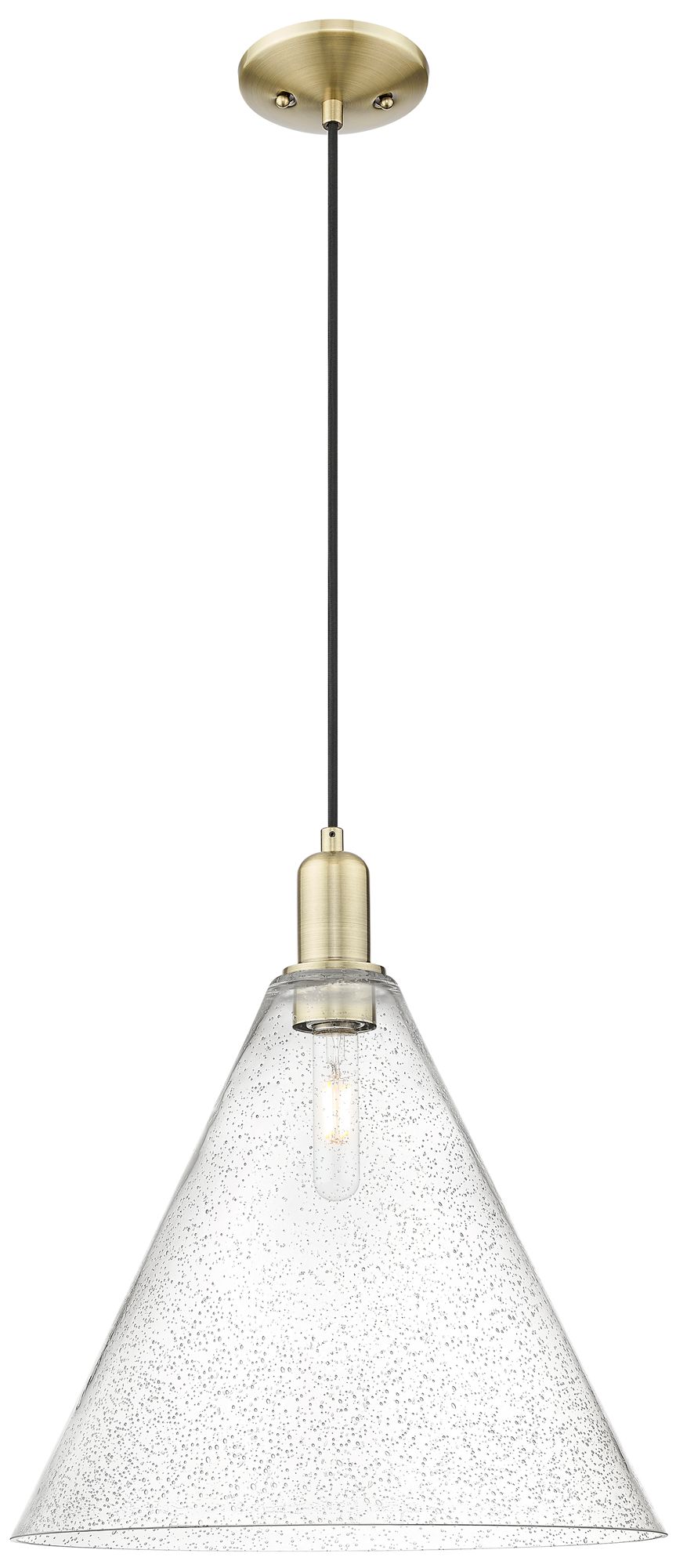 Arcadia Bristol 16"W Brass Cord Hung Mini Pendant With Seedy Shade
