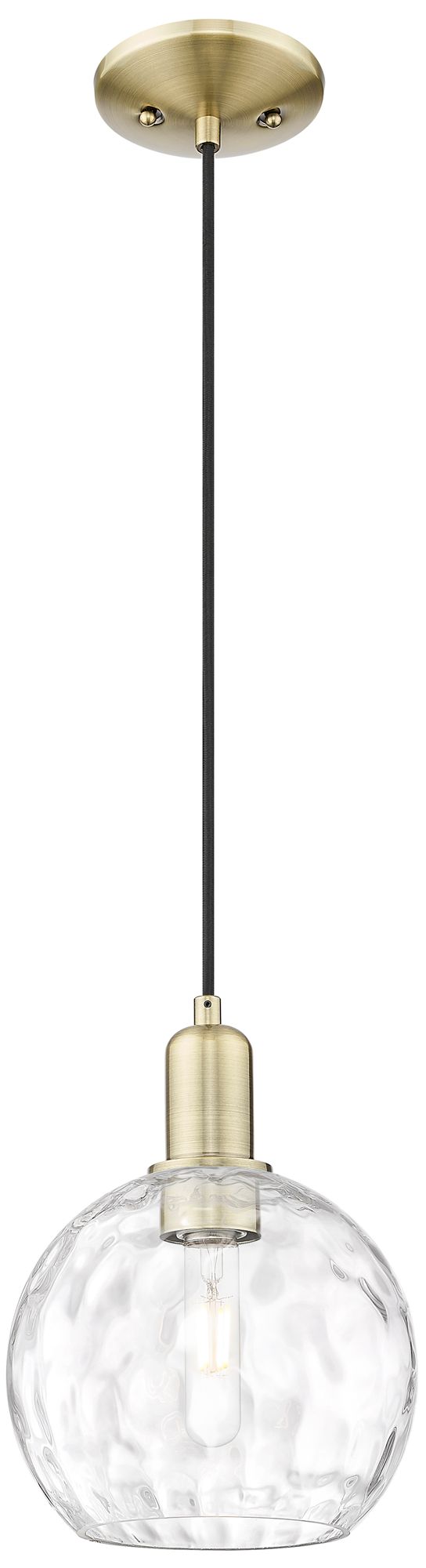 Arcadia Athens 8"W Brass Cord Hung Mini Pendant With Water Glass Shade