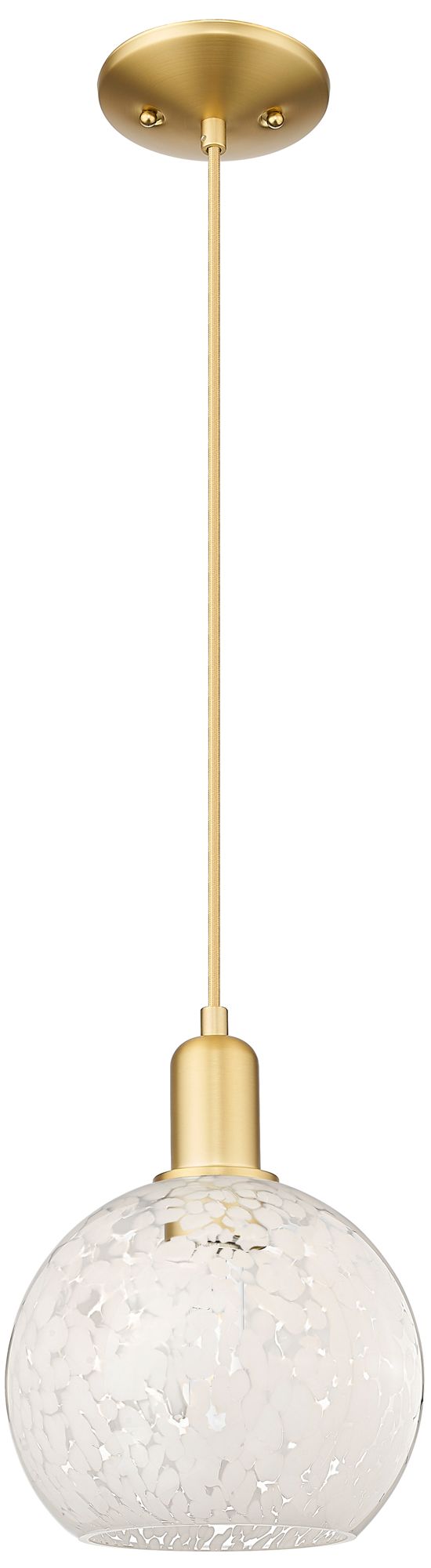Arcadia White Mouchette 8" Wide Satin Gold Cord Hung Mini Pendant