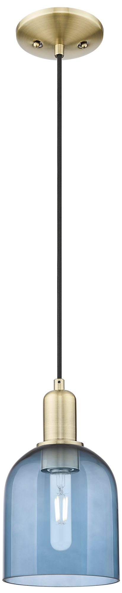 Arcadia Bella 6"W Antique Brass Cord Hung Mini Pendant With Blue Shade