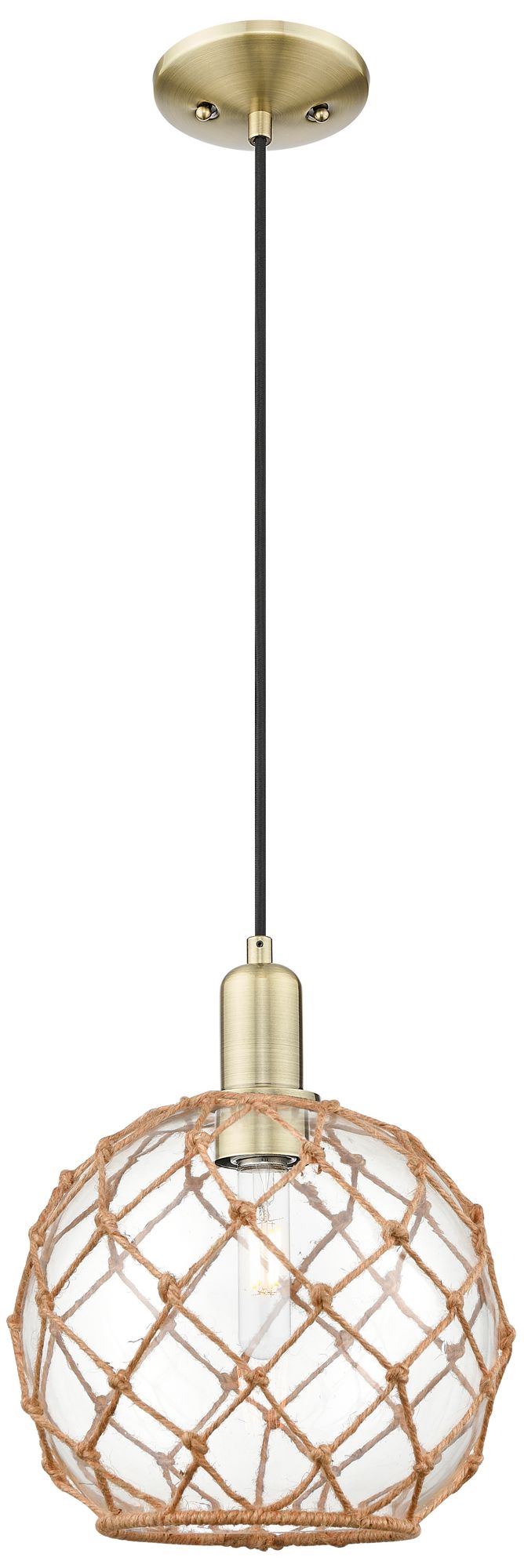 Arcadia Farmhouse Rope 10"W Brass Cord Pendant w/ Clear Brown Shade