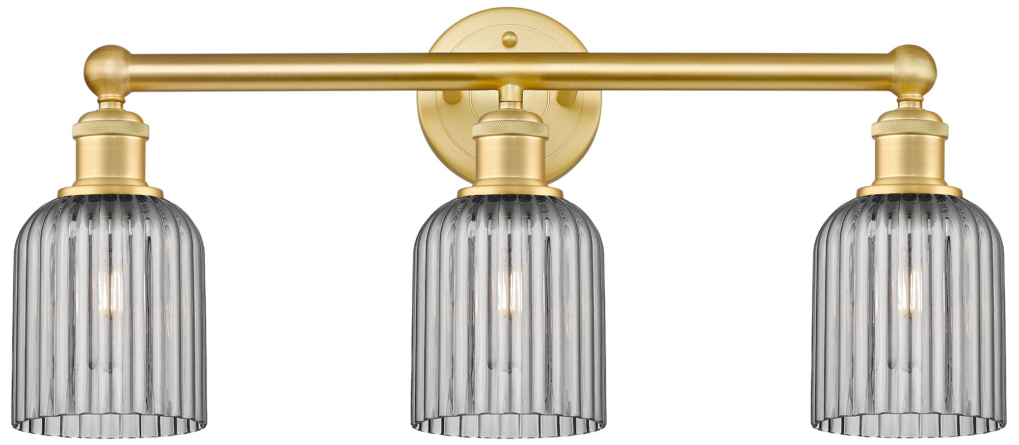 Edison Bridal Veil 3 Light 23" Bath Vanity Brushed Brass Light Smoke Shade