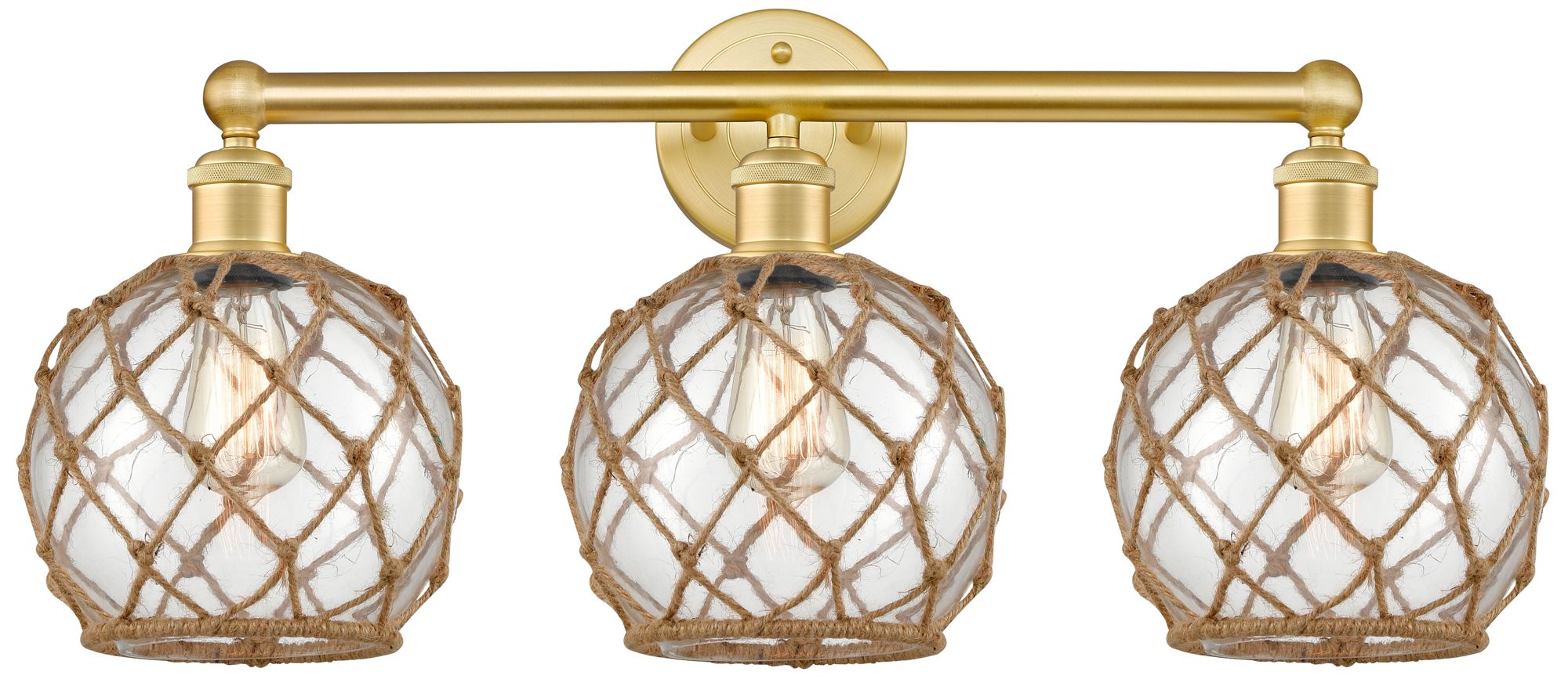 Small Edison Beacon 24.5"W 3 Light Satin Gold Bath Light With Clear Sh