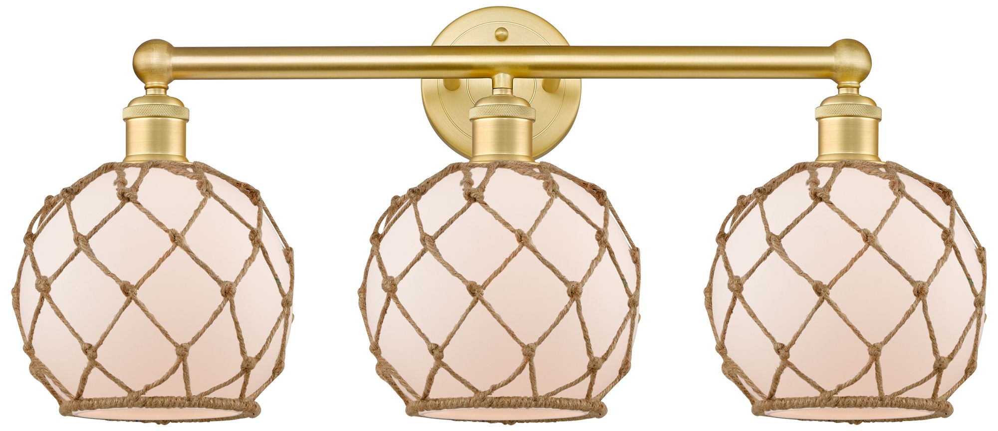 Edison Farmhouse 26"W 3 Light Gold Bath Light w/ White Brown Shade