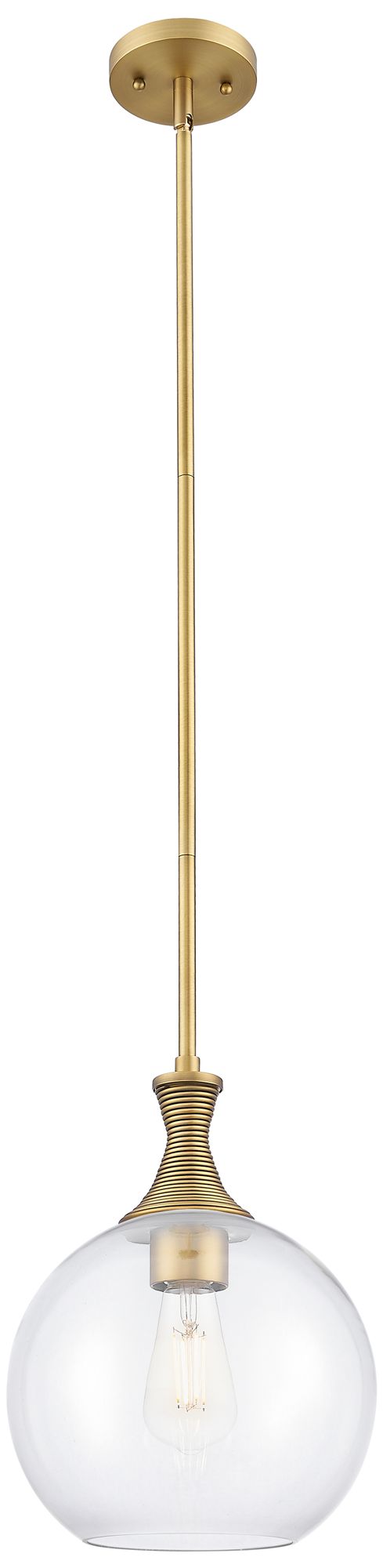 Downtown Astor 10"W Metal Brushed Brass Mini Pendant w/ Clear Shade