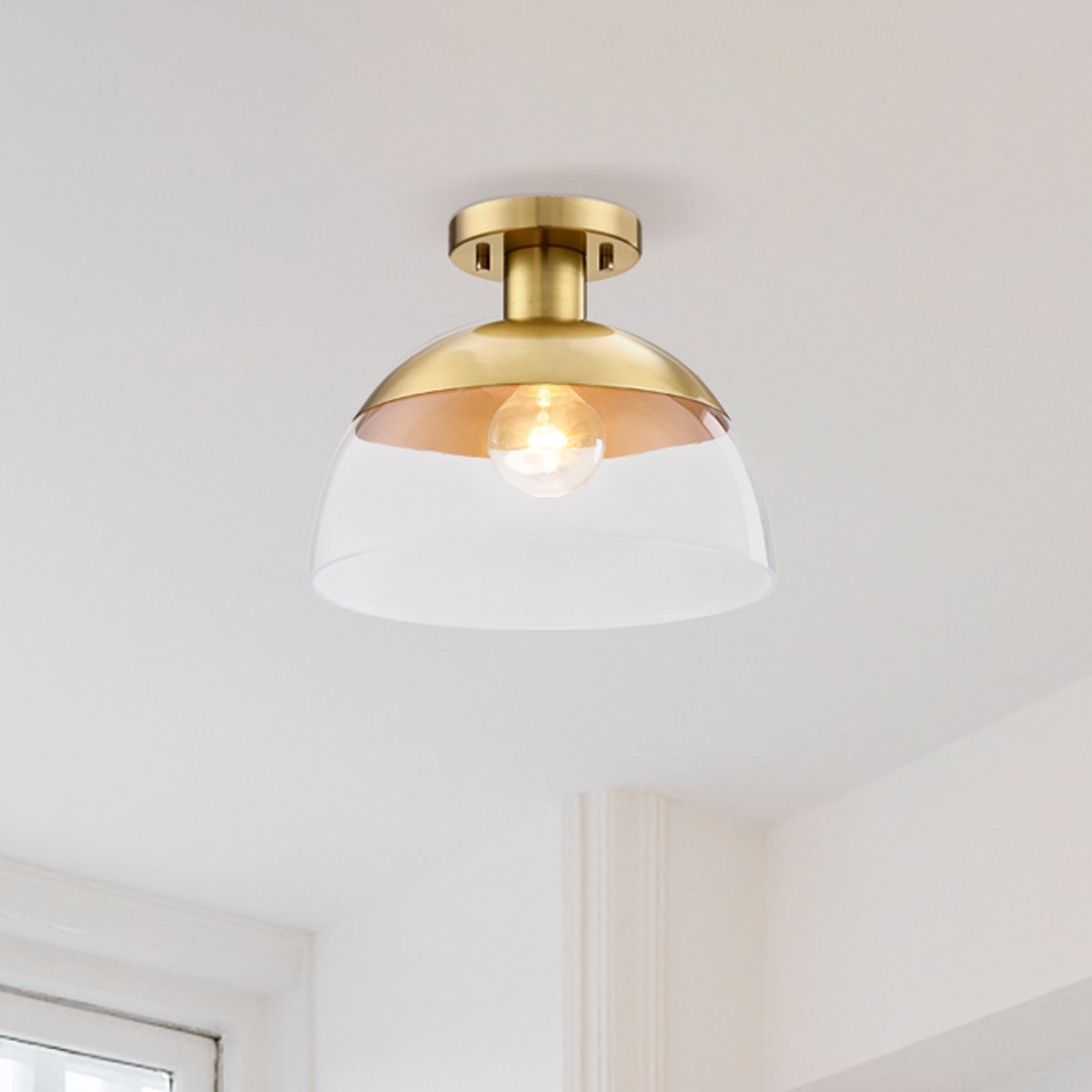 Rey 13 in. 1-Light Brushed Gold Modern Semi Flush Mount