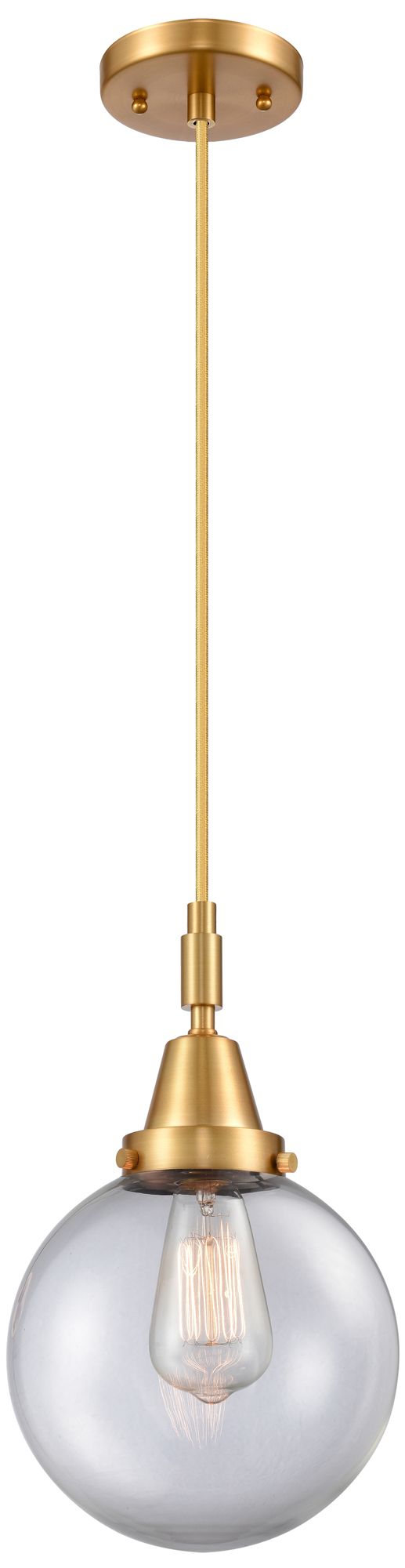 Downtown Caden Beacon 8"W Cord Satin Gold Mini Pendant w/ Clear Shade