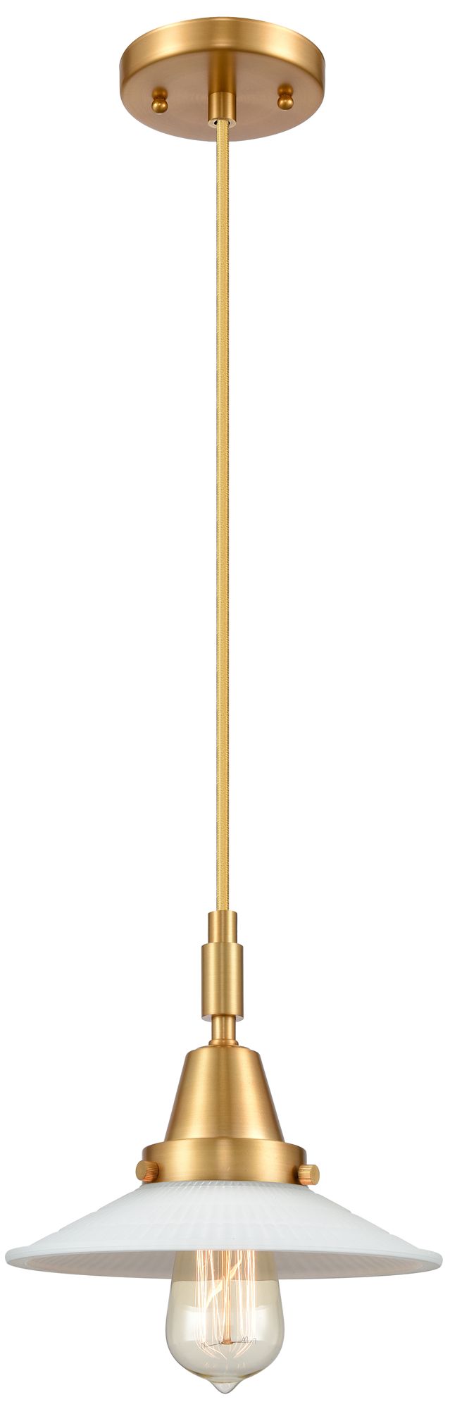 Downtown Halophane 9"W Cord Satin Gold Pendant w/ Matte White Shade
