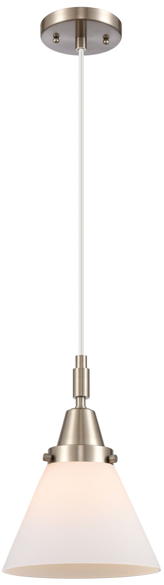Downtown Caden Cone 8"W Cord Satin Nickel Mini Pendant w/ White Shade