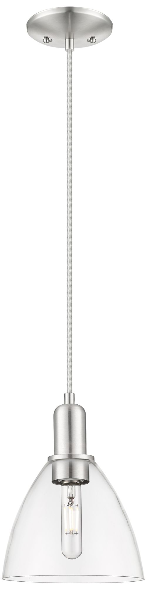 Arcadia Bristol 8"W Brushed Nickel Cord Mini Pendant w/ Clear Shade