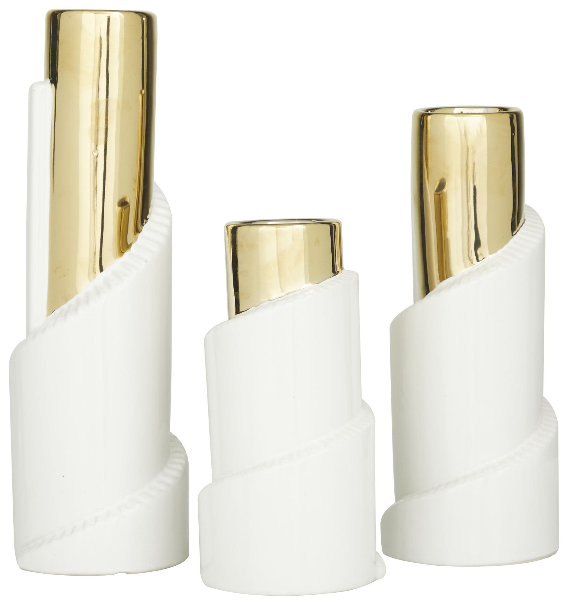 Gold Ceramic Contemporary Vase, S/3 15", 12", 9"H
