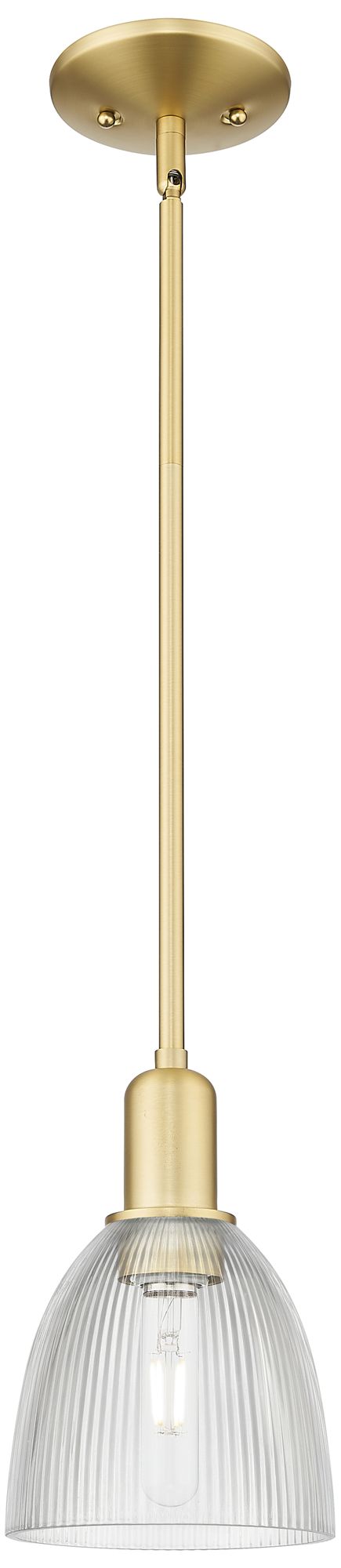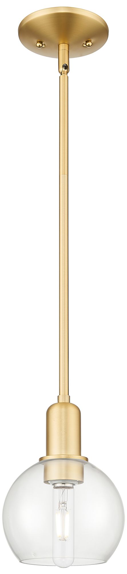 Arcadia Athens 6"W Satin Gold Stem Hung Mini Pendant With Clear Shade