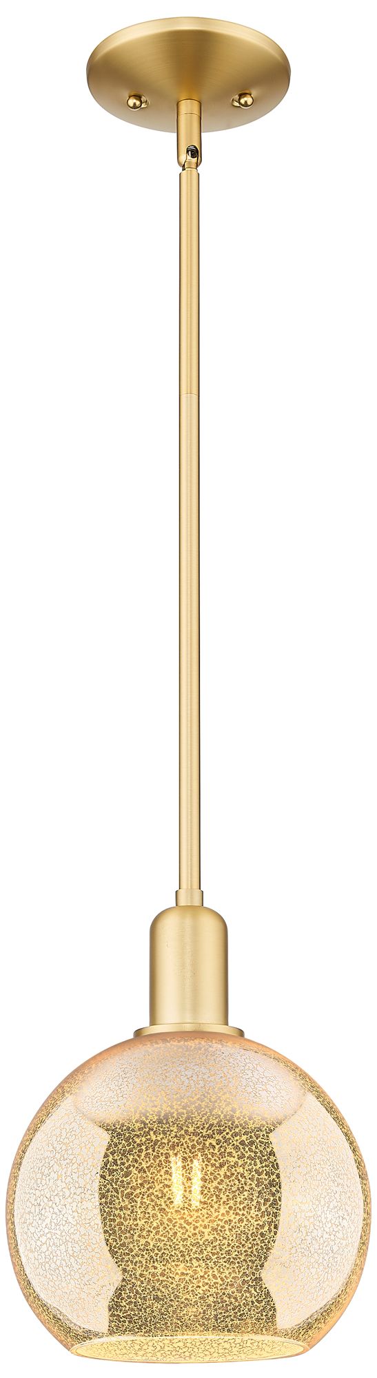 Arcadia Athens 8"W Satin Gold Stem Hung Mini Pendant w/ Mercury Shade