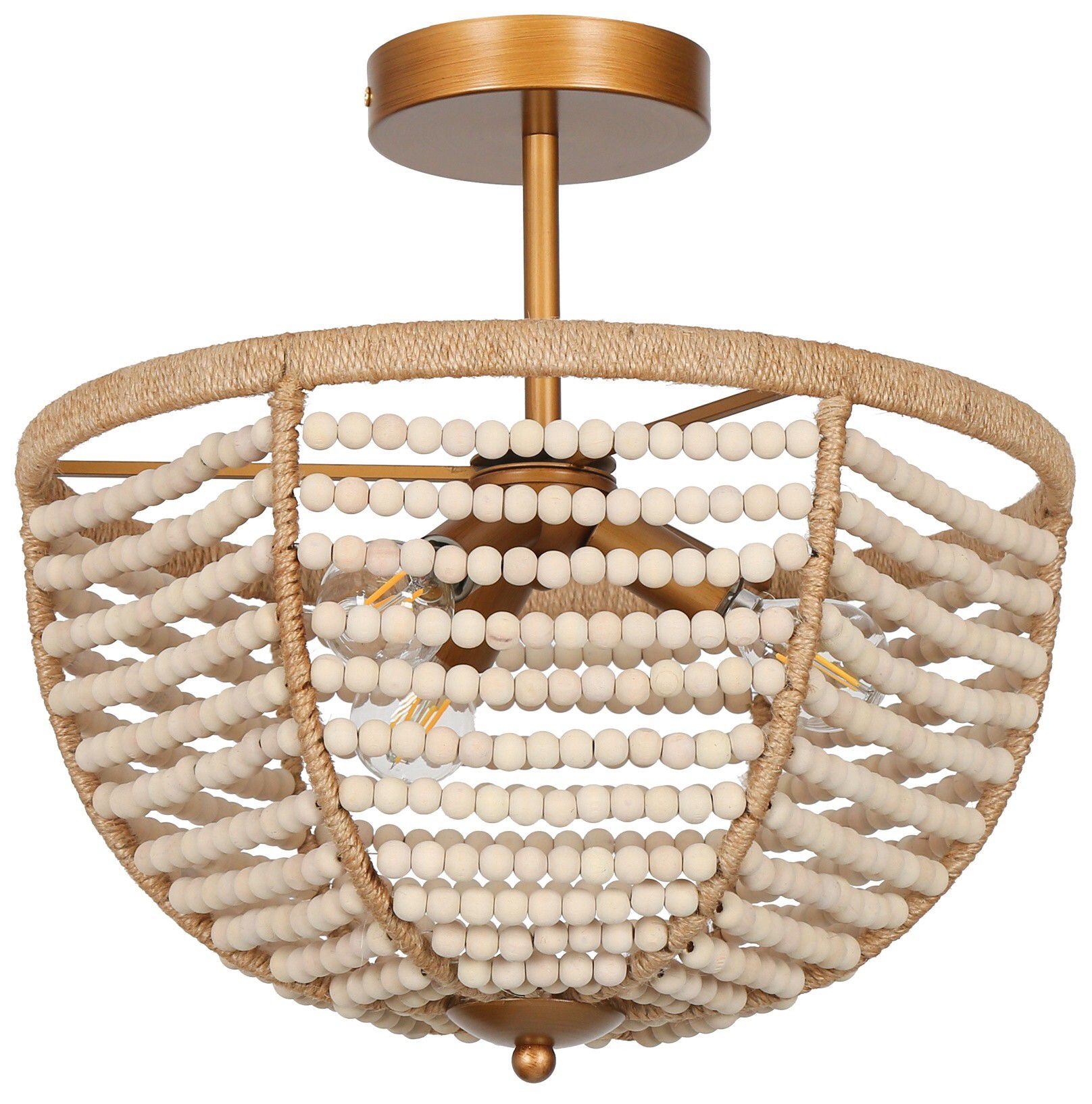 Mosgan 14" Wide Wood Beaded 3-Light Ceiling Light