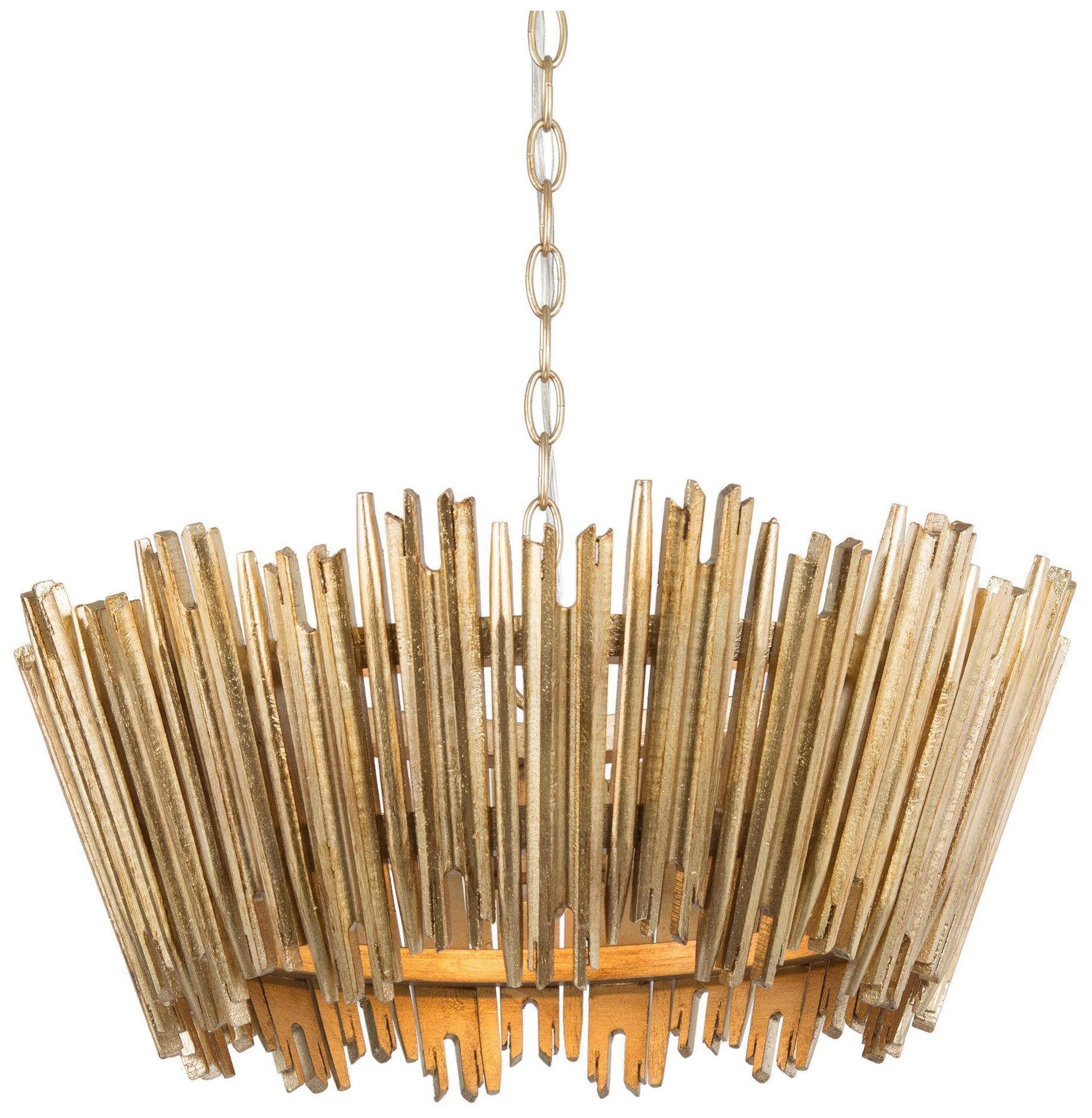 3-Light 19.7"W Drum Antique Gold Wood Chandelier
