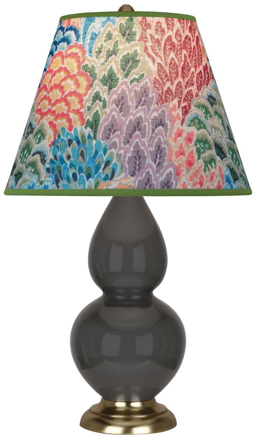 Double Gourd 22.75"H Ash And Brass Accent Lamp w/ Spring Floral Shade