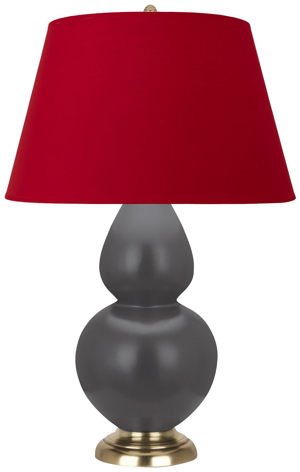 Double Gourd 31"H Matte Ash And Brass Lamp w/ Black And Red Shade