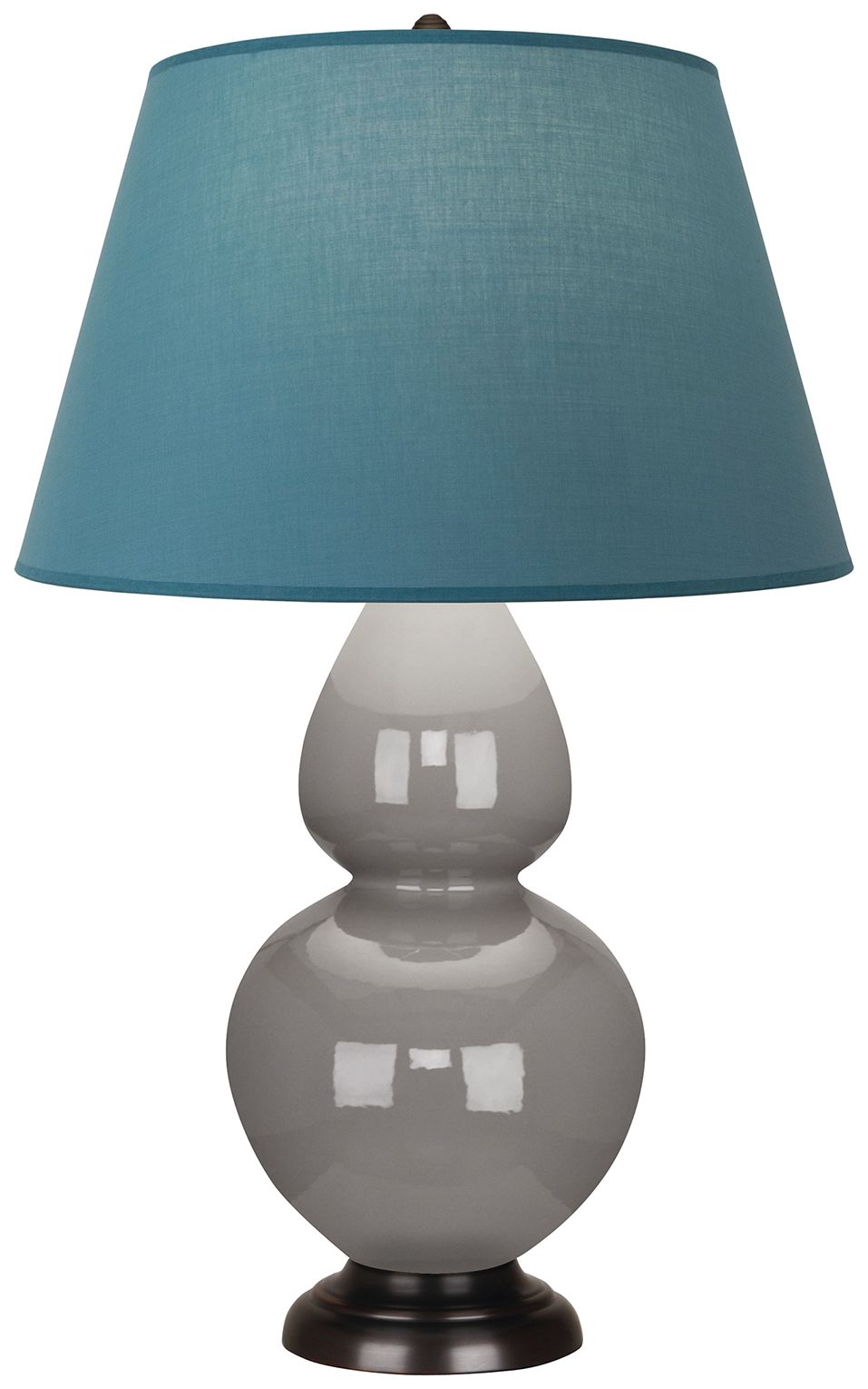 Double Gourd 31"H Ash And Bronze Lamp w/ Bright Blue And Gray Shade