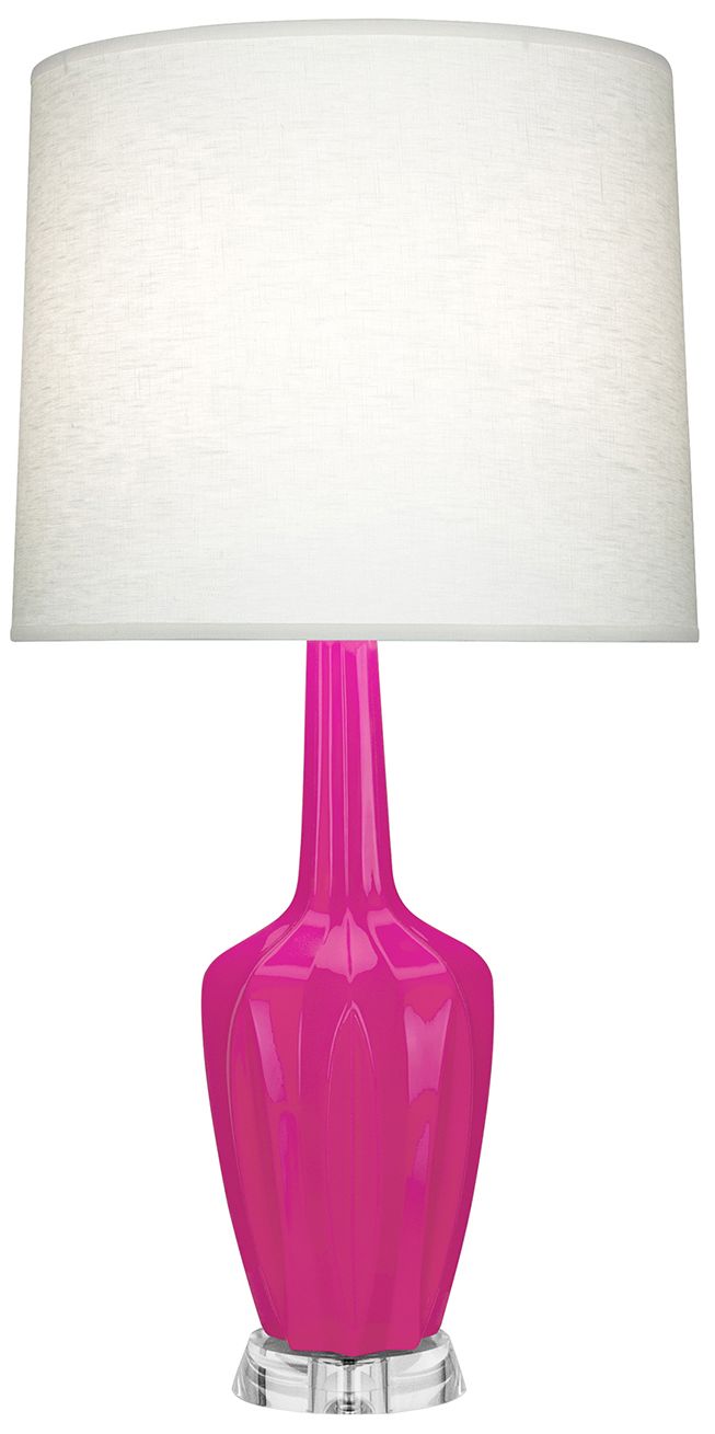 Small Emma 30" High Razzle Rose Lucite Accent Lamp with Off White Shade