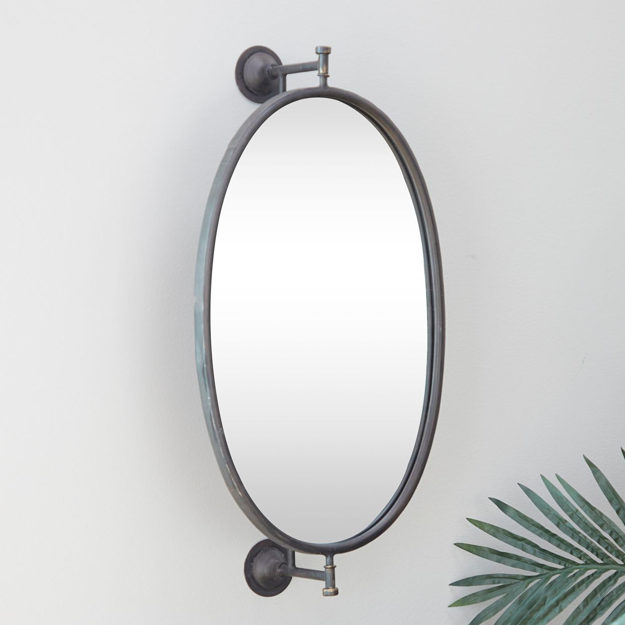 Logan Polished Black Metal 15" x 29" Oval Wall Mirror