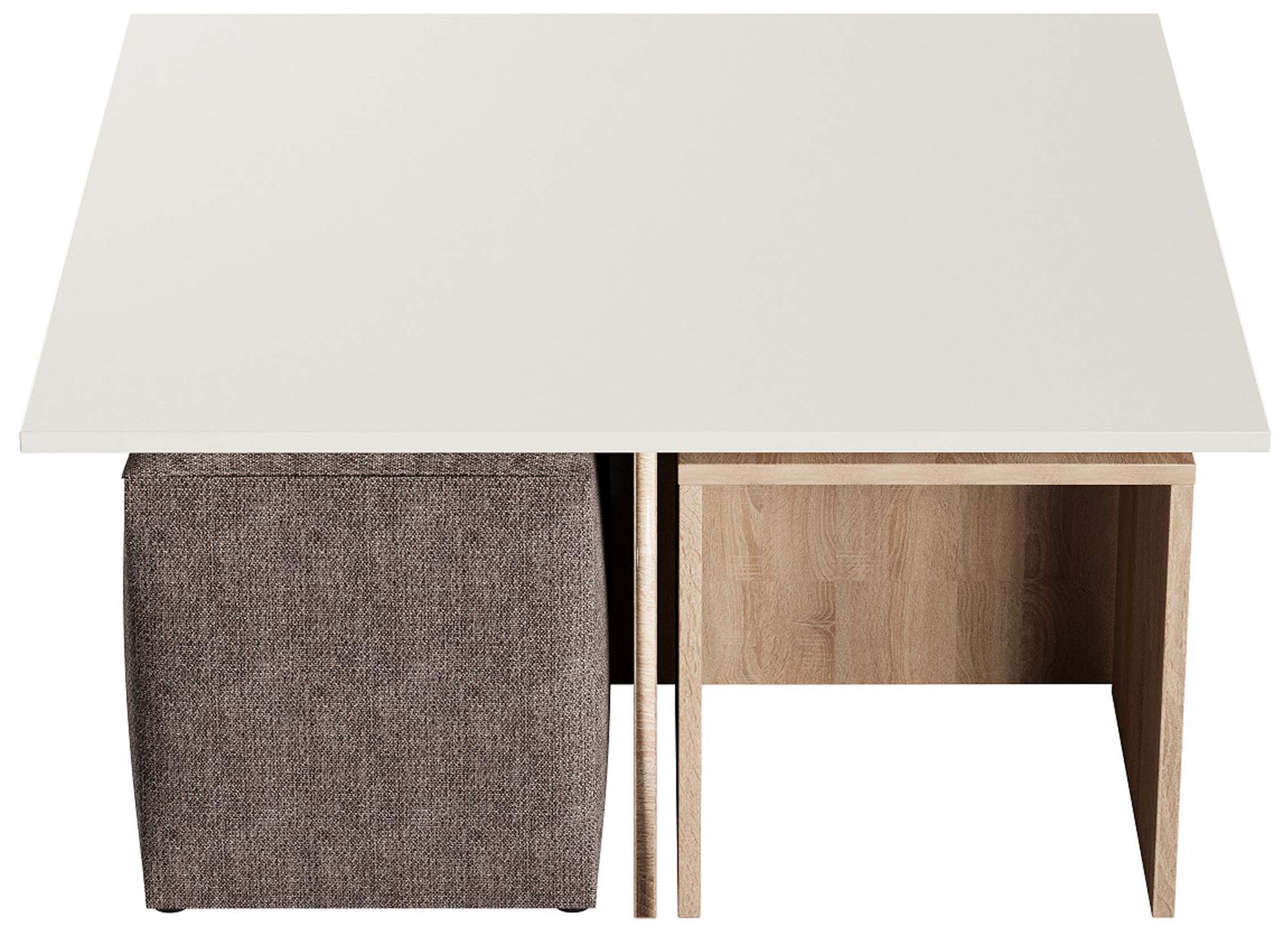 Haley Mid-Century Modern Nested Coffee Table & Ottoman Set in Natural&