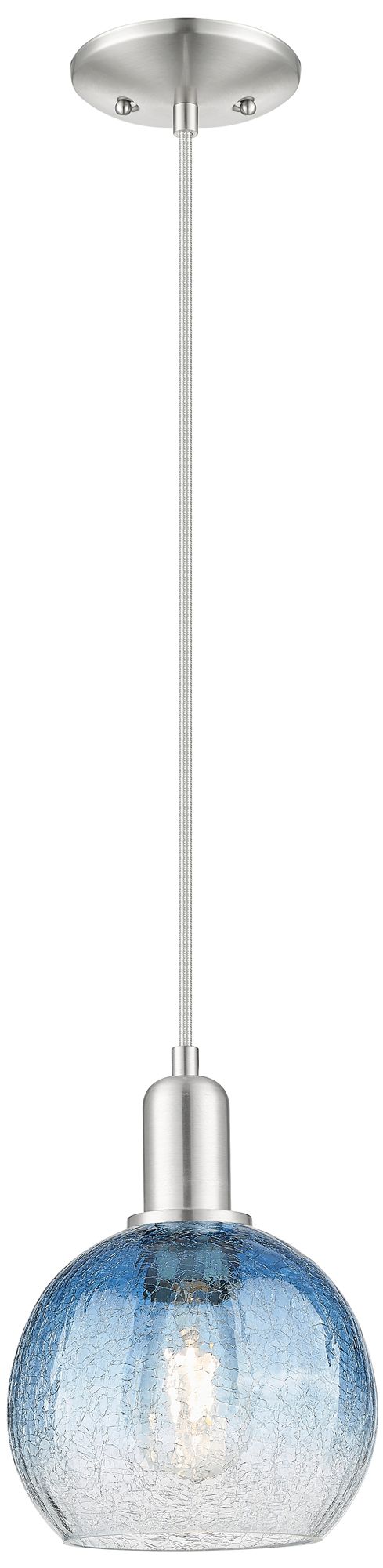 Downtown Brookhaven Globe 8"W Cord Satin Nickel Pendant w/ Sapphire Shade