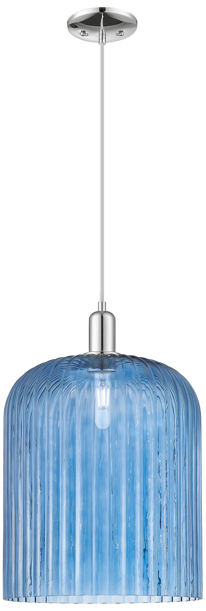 Bridal Veil 12"W Polished Chrome Cord Hung Mini Pendant With Blue Shade