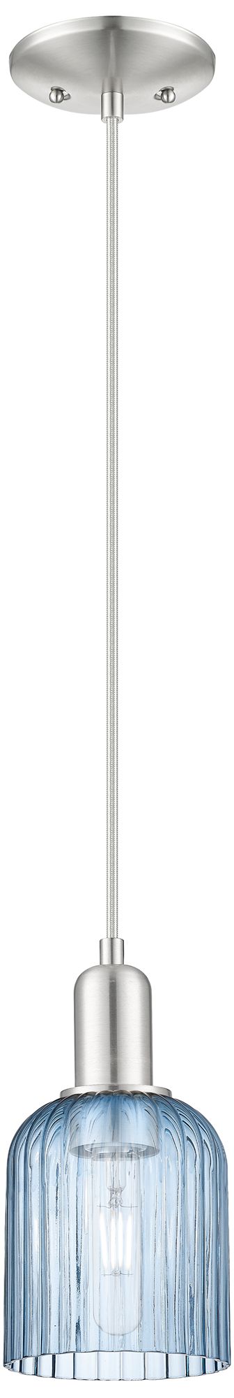 Bridal Veil 5"W Brushed Satin Nickel Cord Mini Pendant With Blue Shade
