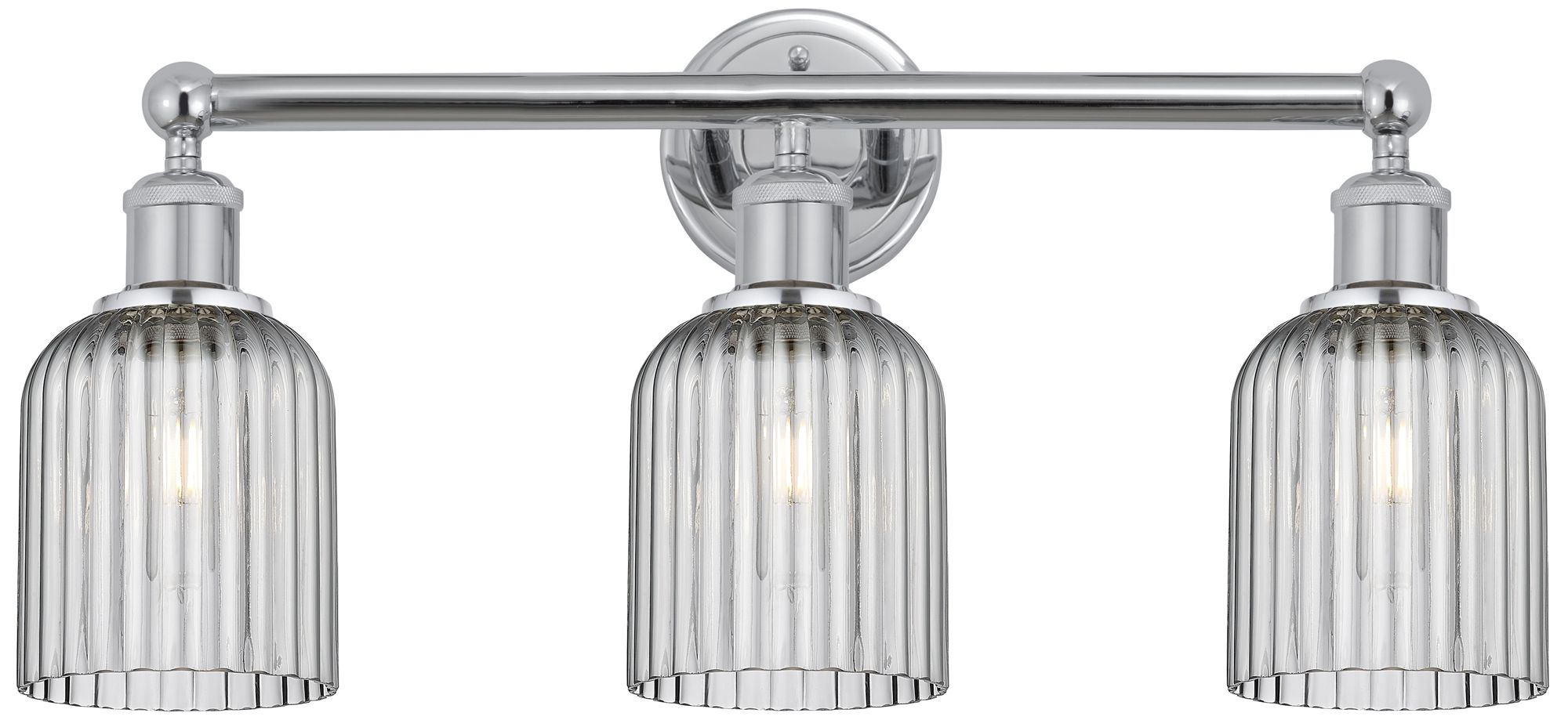 Vienna 21" Wide 3 Light Polished Chrome Vanity With Clear Ribbed Glass