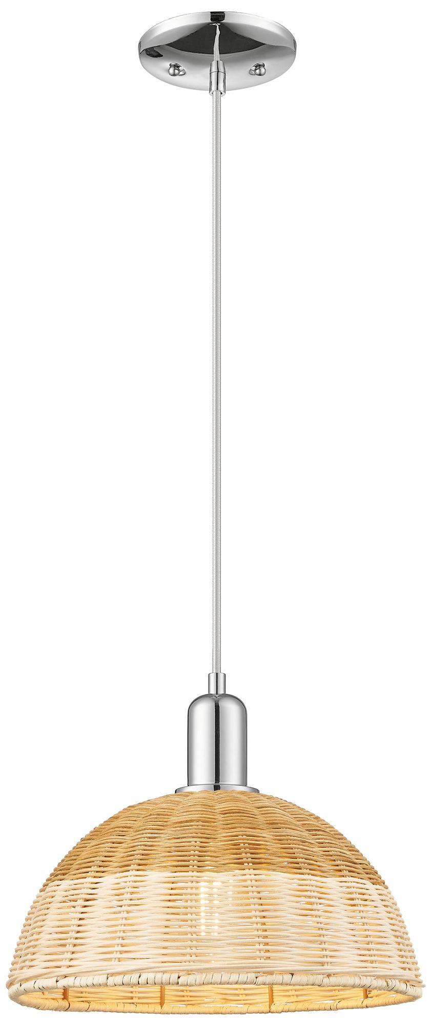 Ballston Dome Wide Chrome Cord Mini Pendant w/ 12" Basketweave Shade