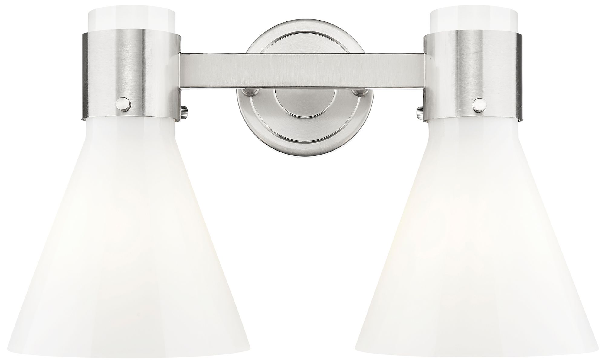 Caden Cone 16.75"W 2 Light Satin Nickel Bath Vanity Light w/ White Sha