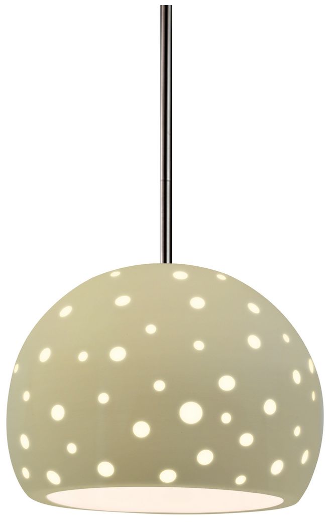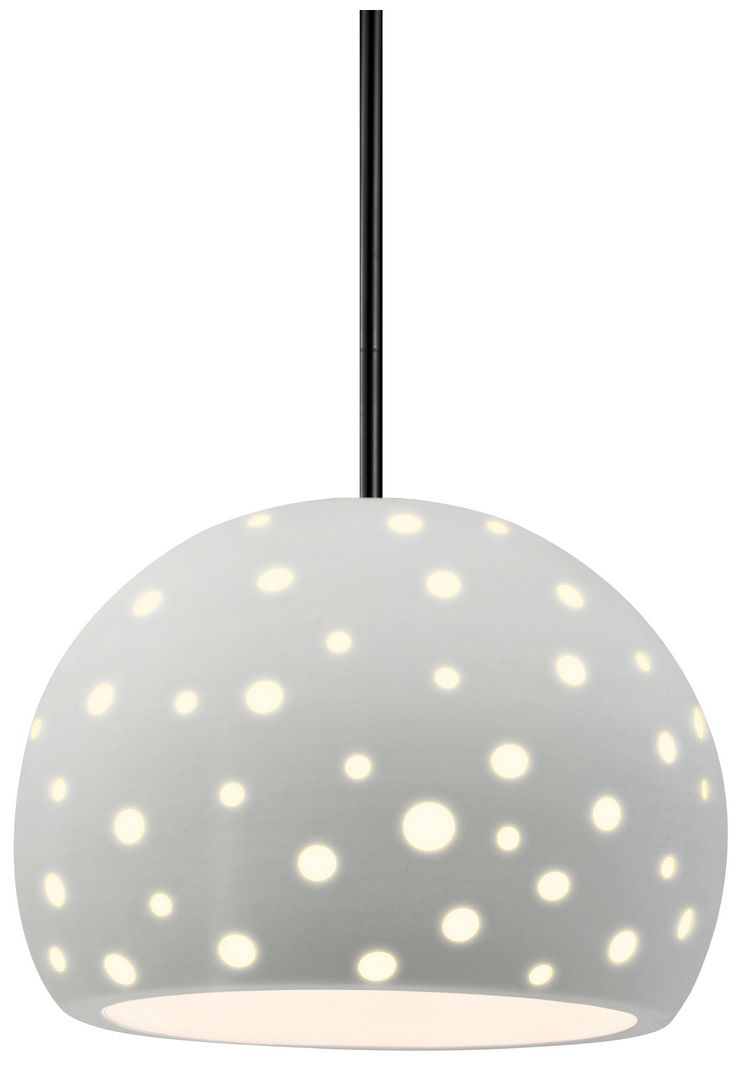 Perforated Dish 12" Wide Bisque Pendant With Chrome Black Cord
