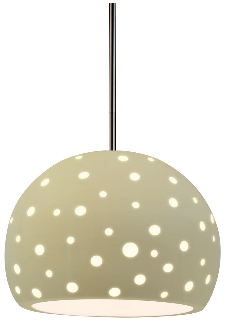 Perforated Globe 12.25"W Bisque, Brushed Nickel Pendant - Rigid Stem
