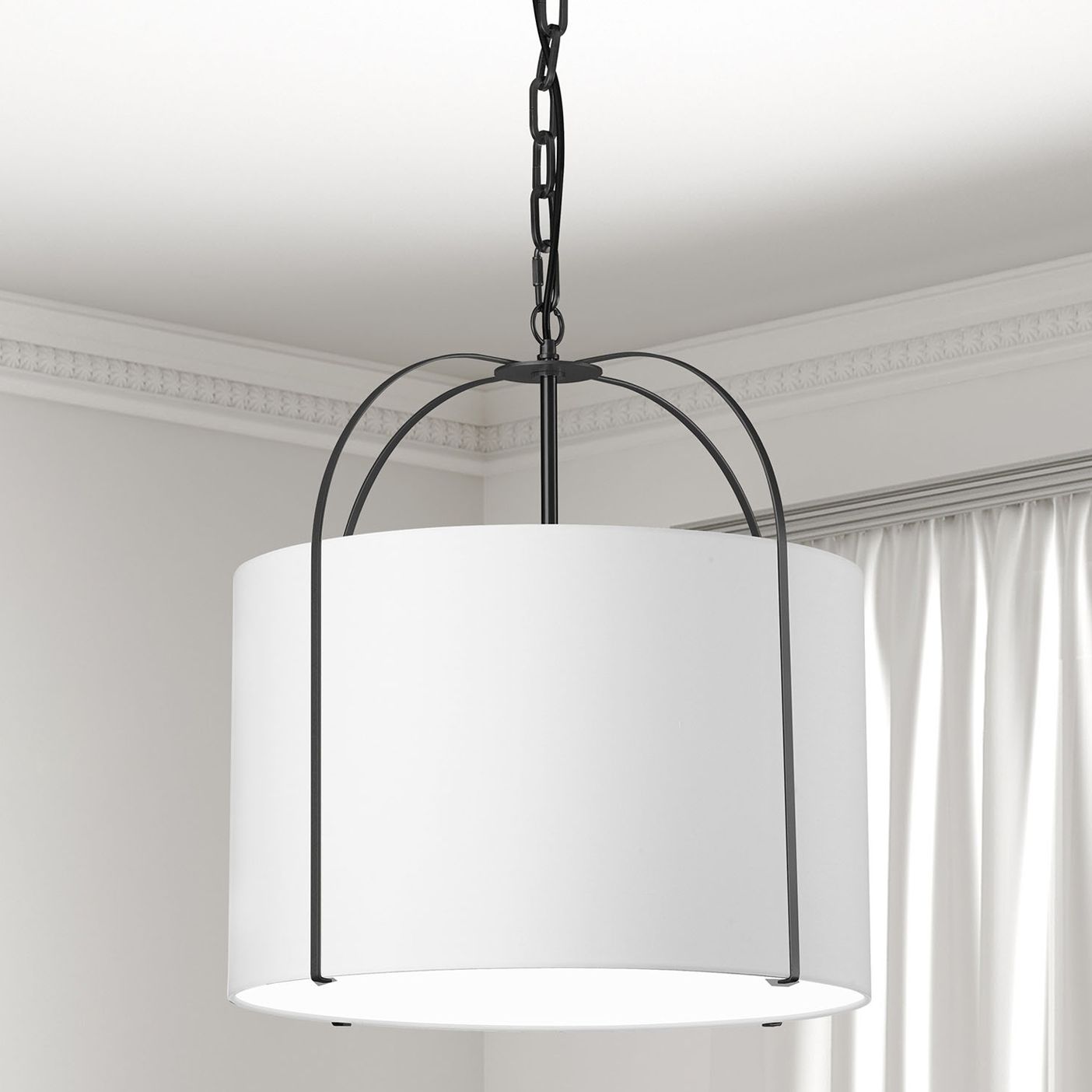 Dainolite Quincy 18" Wide Matte Black White Drum Pendant