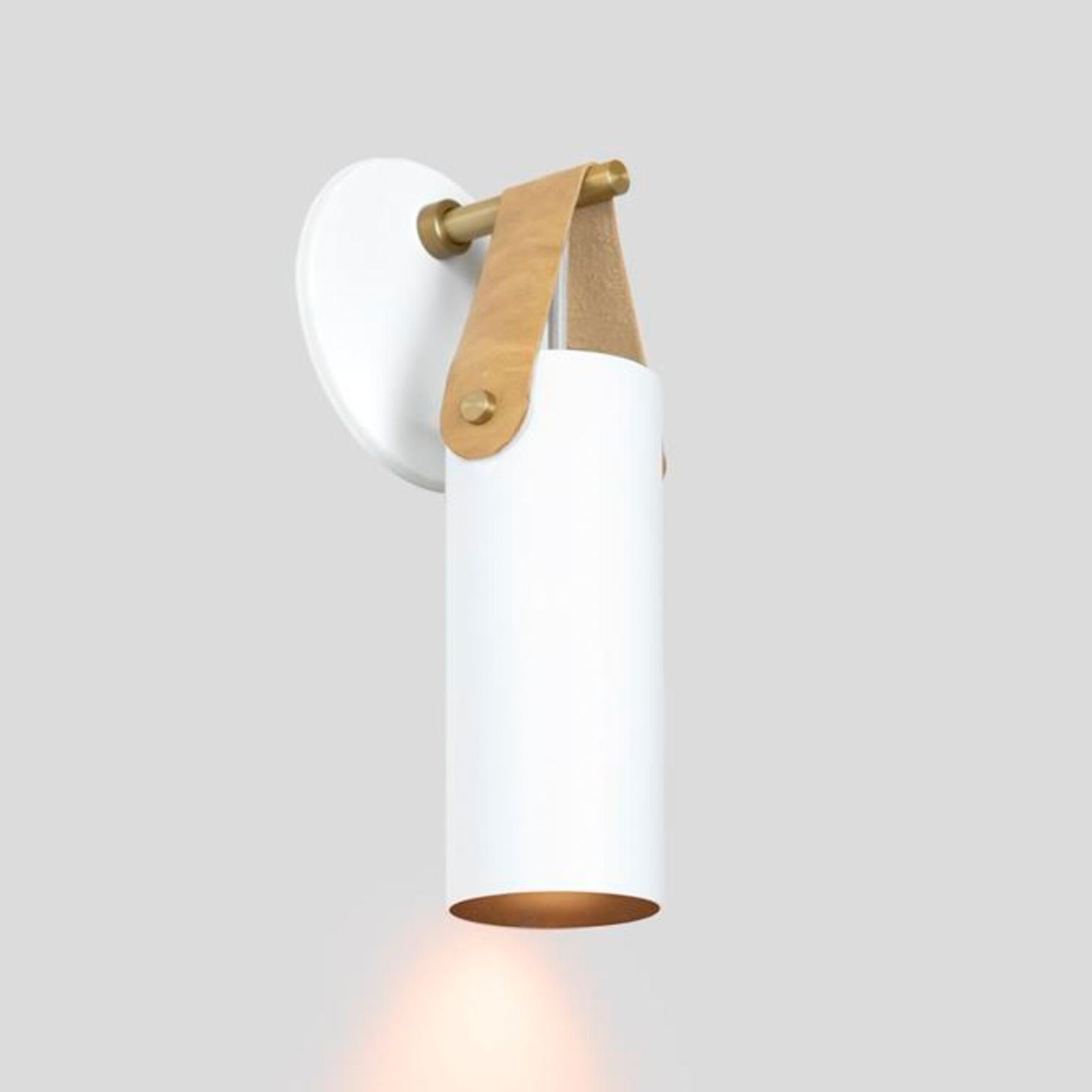Spero Sconce, White w/ Tan Leather