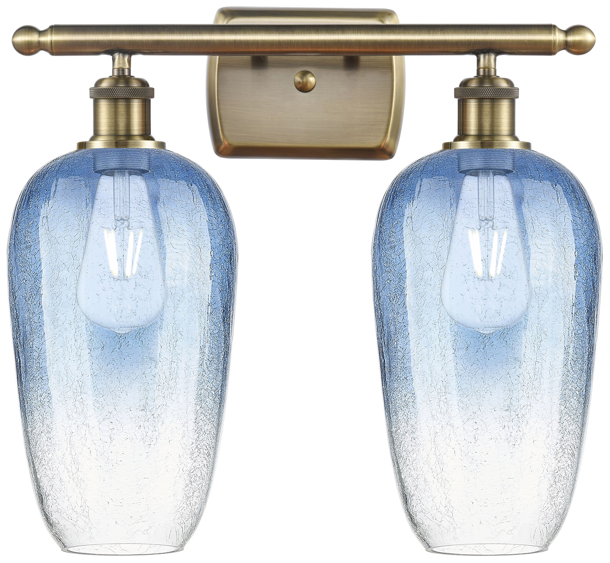 Ballston Brookhaven Flute 17"W 2-Lt Brass Bath Light w/ Sapphire Shade