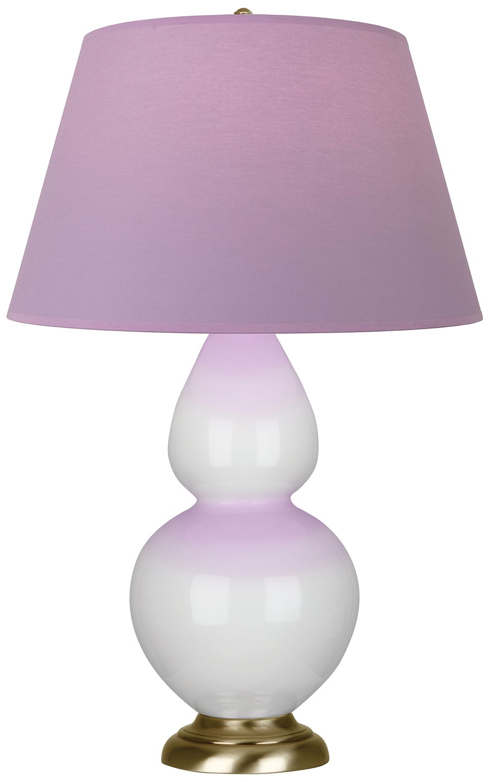 Double Gourd 23"H Matte Lily And Brass Lamp w/ Plum And Lavender Shade