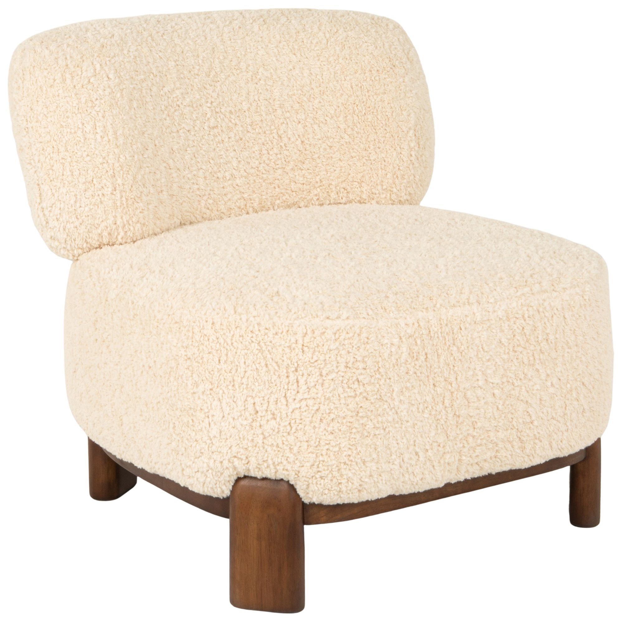 Boucle Accent Chair with Wood Base, Ivory