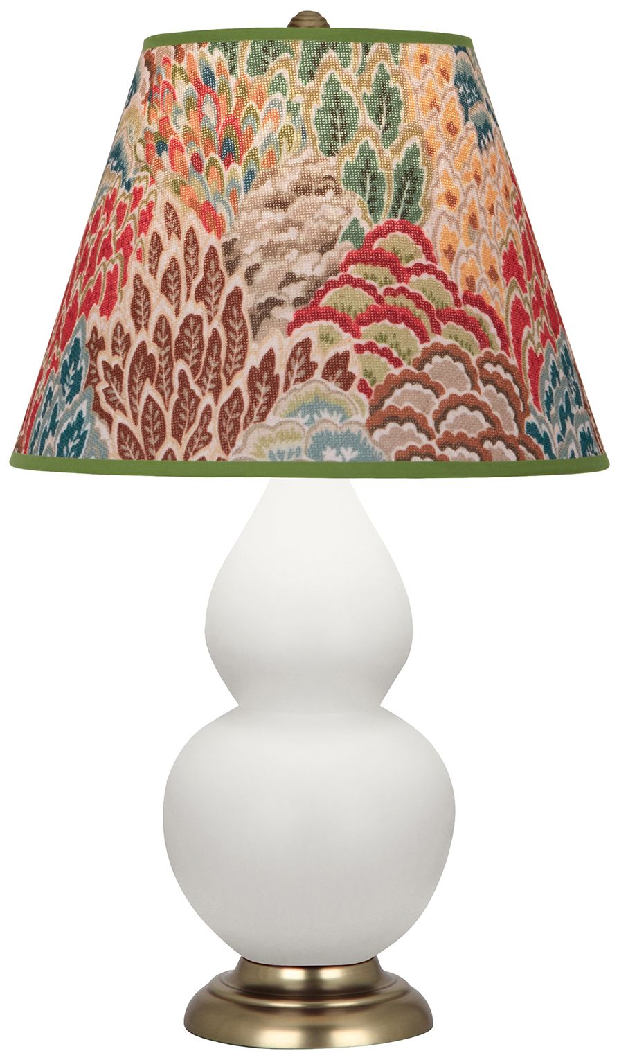 Double Gourd 22.75"H Matte Lily And Brass Lamp w/ Fall Floral Shade