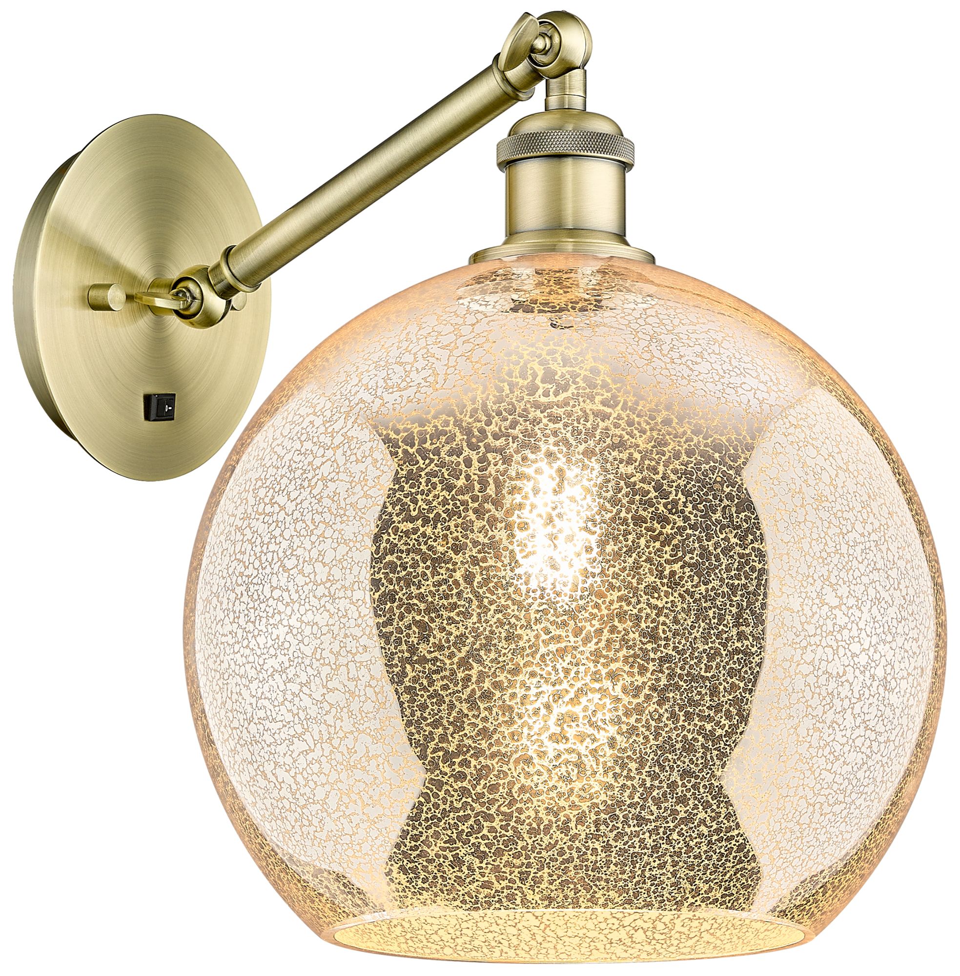 Athens 12" High Antique Brass Adjustable Sconce with Mercury Shade