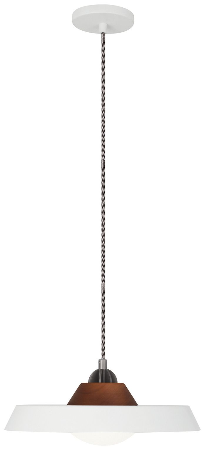 Mavisten Edition Far 14" Wide White And Wood Detail Pendant