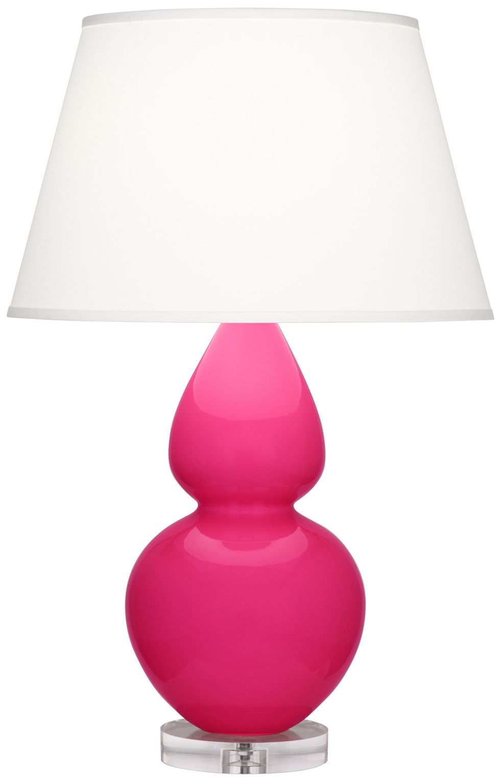 Double Gourd 30"H Razzle Rose And Lucite Table Lamp With Pearl Shade