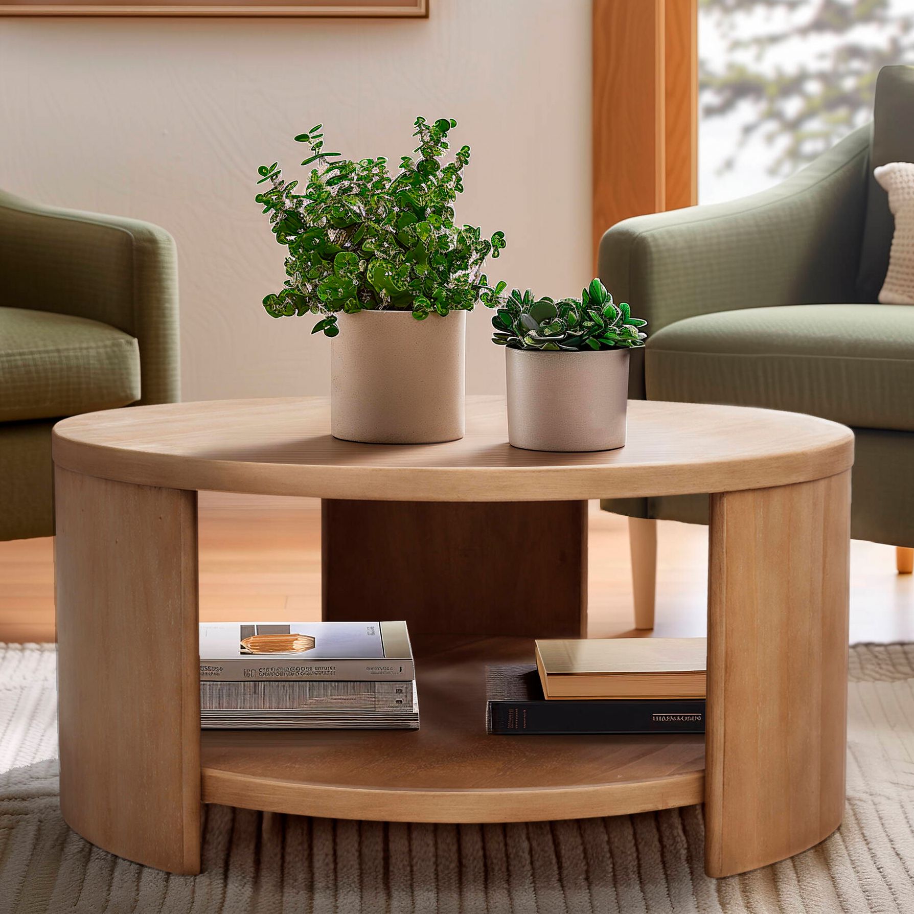 INK+IVY Natural Skye Round Coffee Table with Shelf