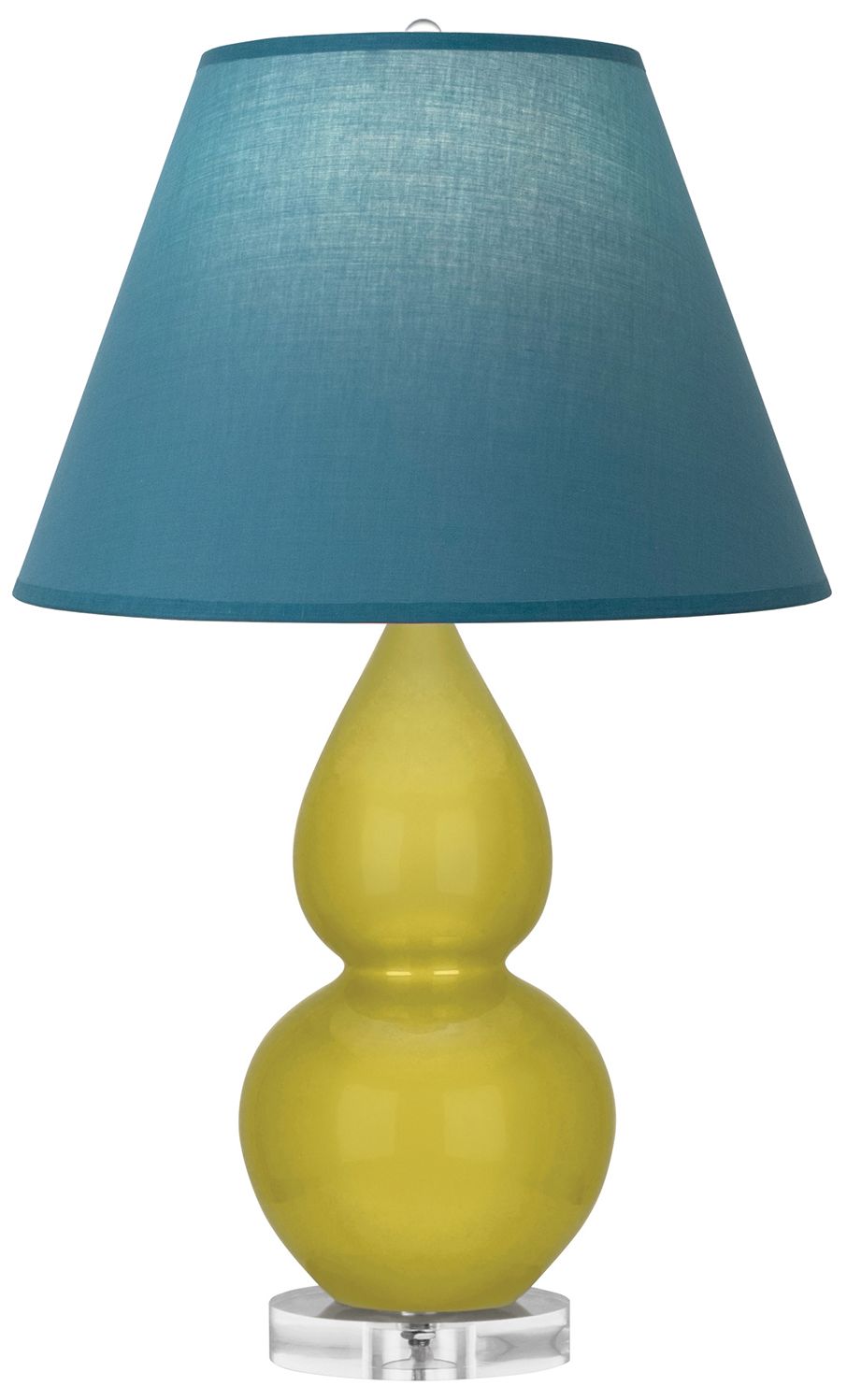 Double Gourd 22"H Citron And Lucite Lamp w/ Bright Blue And Gray Shade