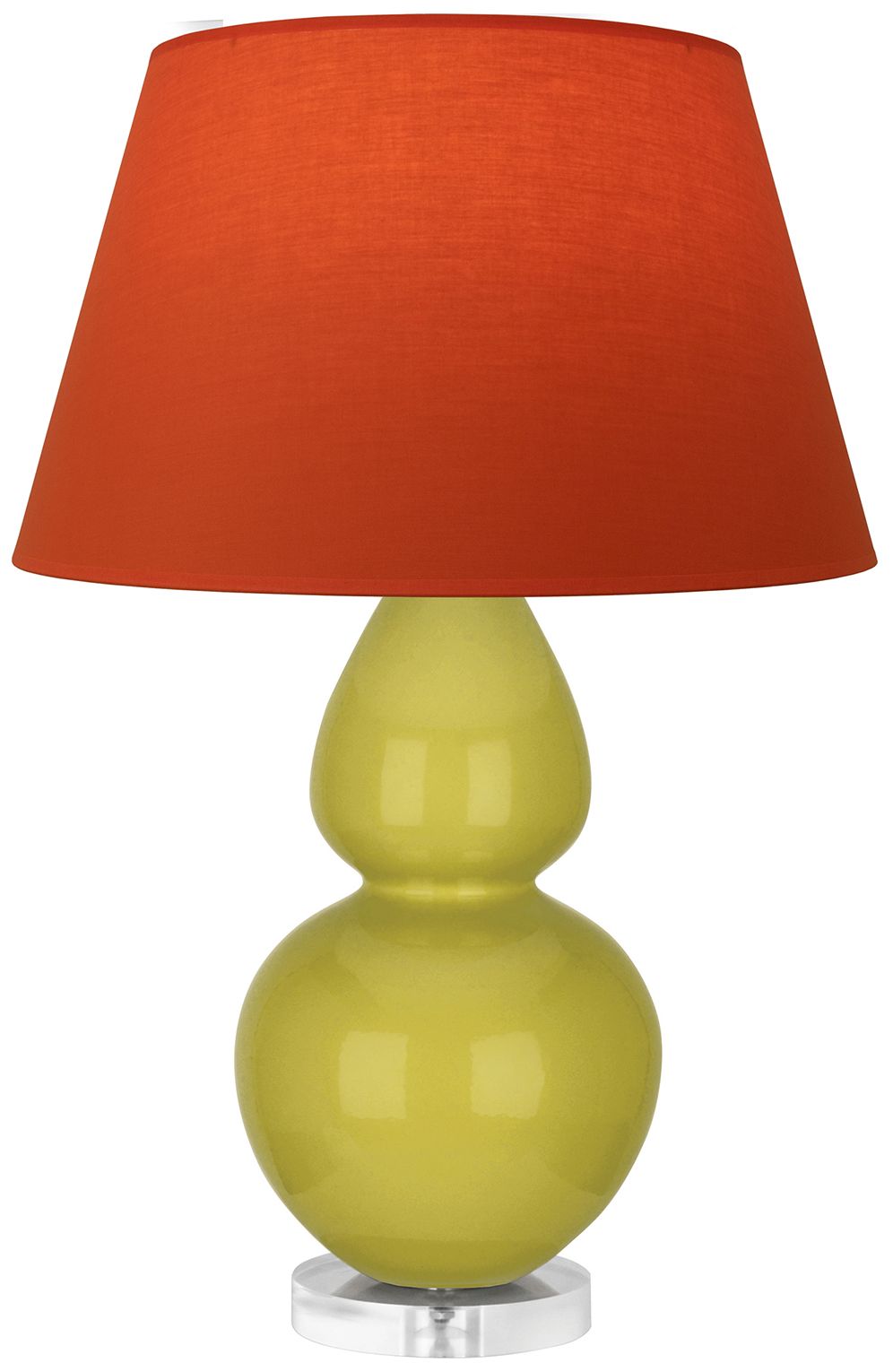 Double Gourd 30"H Citron And Lucite Lamp w/ Tangerine And Taupe Shade