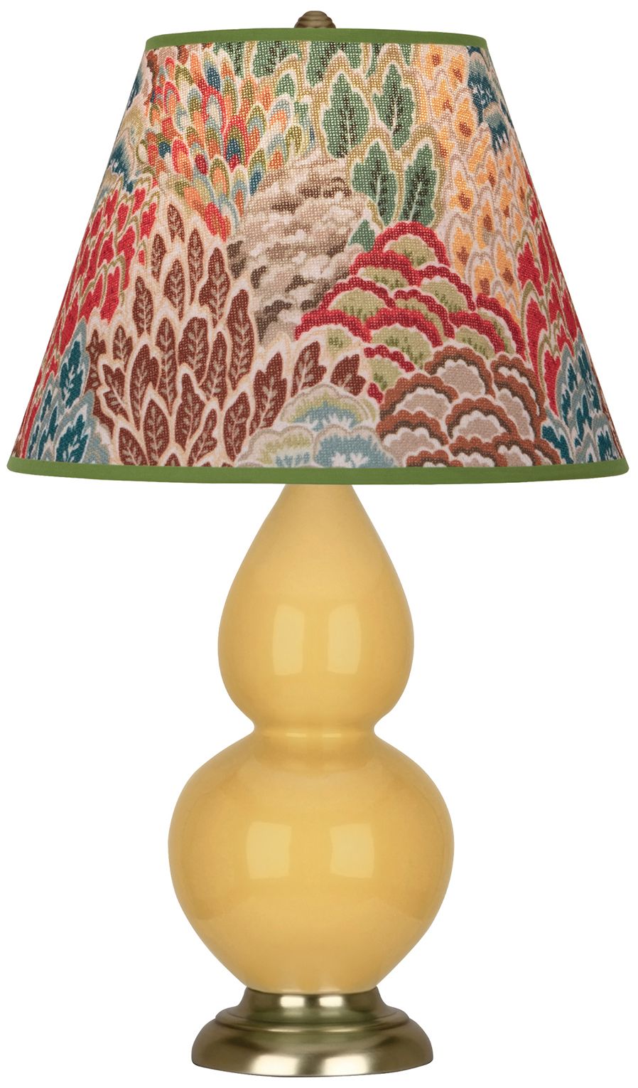 Double Gourd 22.75"H Yellow And Brass Accent Lamp w/ Fall Floral Shade