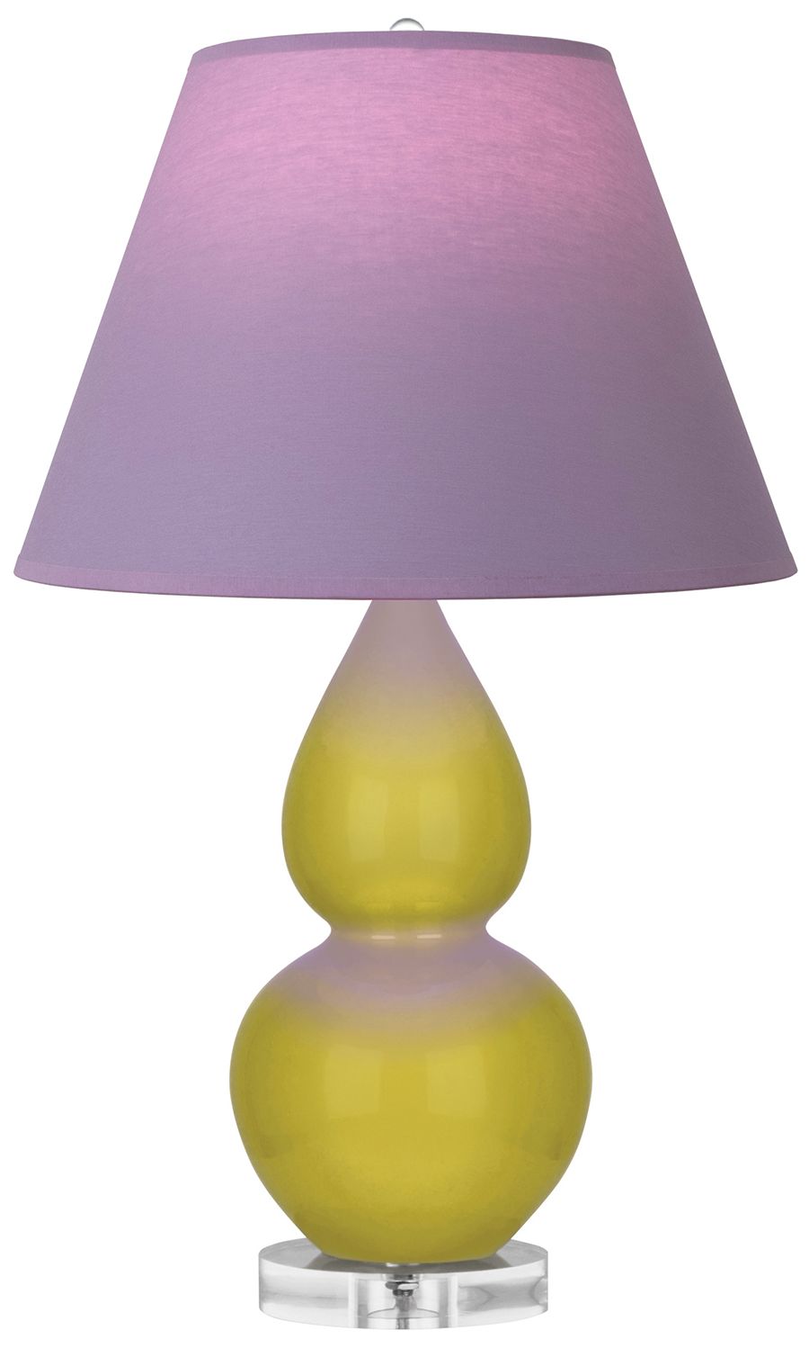 Double Gourd 22"H Citron And Lucite Lamp w/ Lavender And Plum Shade